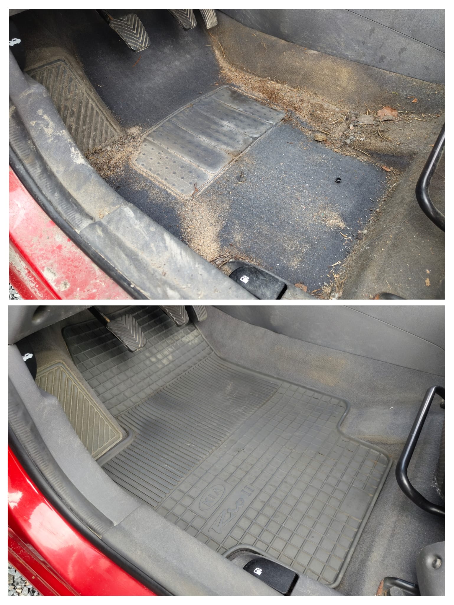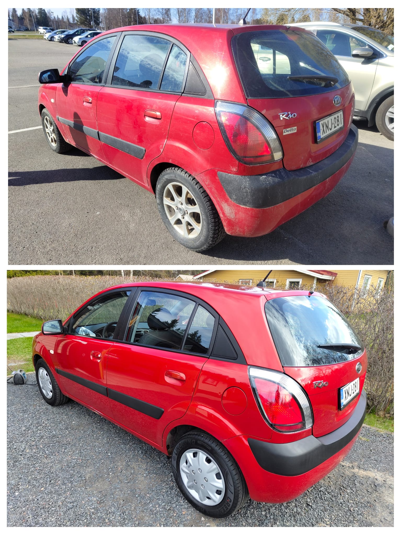 Sitten tällainen heräteostos, trailerilla pihaan kun taka-akseli oli vähän hapan ja uhkana oli paalaus. Vaihtui uusi akseli ja siinä samalla iskunvaimentimet ja jarrut taakse, öljyt ym. perus setit. Ja paras osuus eli perusteellinen siivous, tuli hyljätystä pikku-Kiasta vielä oikein siisti auto! Ja lähtikin pihasta heti kun sain valmiiksi, ei tarvinnut edes myyntiin laittaa.