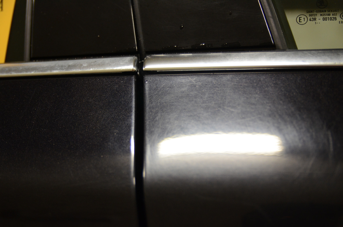 Auto on siis vuosimallia 2012, mittarissa n.115tkm. Pesty liukkarilla ja harjalla (ei koneessa kuitenkaan) ja pinta on täynnä pesunaarmua ja lumiharjan naarmua. Pintaa ei ole koskaan vahattu.